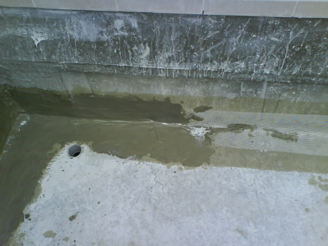 屋頂防水工程 L角鋪設(shè)加強(qiáng)網(wǎng)以往屋頂漏水的部位,大部份都發(fā)生在這個L 角和漏水管旁邊,因為L角的女兒墻和地坪不是一體成型有二次的施工接縫,本工法采用海菜水泥膏,在二次接縫部分加強(qiáng)防水層的抗拉性