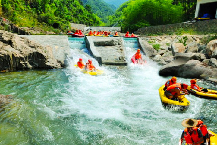 夏季怎么不玩水呢?吃完中飯本來想去賓館附近的漂流玩一玩,經過多方問詢,被告知附近的漂流不是很刺激,稍微緩和一點,為了不留下遺憾為旅程劃上一個圓滿的句號,大家一拍即合,選擇了安吉最刺激的將軍關漂流,盡管需要1.5小時的路程,但大家興致勃勃還是充滿期待,果然沒有讓我們失望,玩的刺激又開心!